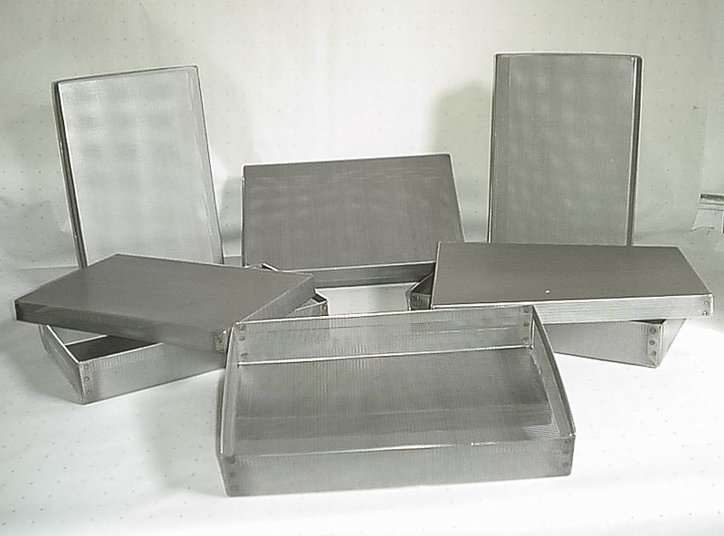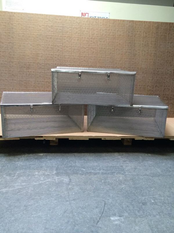 Stainless Steel 315 Perforated Boxtype Baskets with Piano Hinge and Camluck Closure bottom support and all binded top.