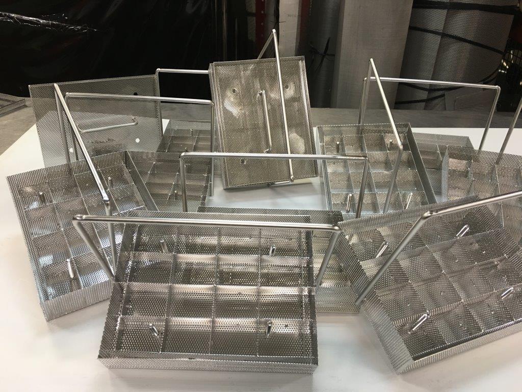Stainless steel 316L- 1/4" perforated cleaning baskets with inside dividers, perforated cover and stainless steel cam lock.