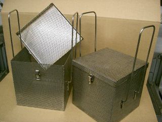 Wire Cloth/Mesh and perforated dipping and parts cleaning baskets. We manufacture and custom fabricate to any specification, size, shape and material. Designed to fit most standard ultrasonic cleaners, these baskets are good for degreasing, rinsing parts, cleaning, plating, heating, finishing parts and material handling.