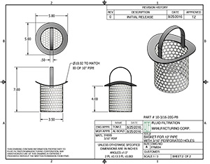 Material of construction: zinc plated steel, stainless steel, monel, hastelloy, etc. Perforated 1/32" to 1.0" diameter holes.