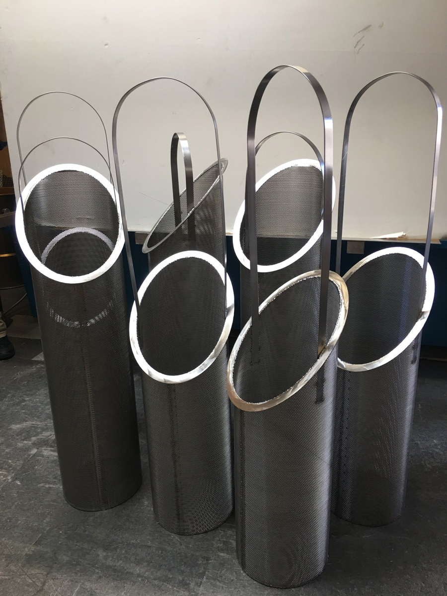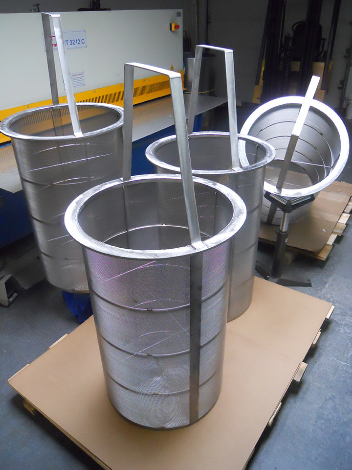 Fomaco, Russllefinex replacement baskets available in expanded metal or peforated Stainless Steel with machine grooved or stamped top and bottom rings