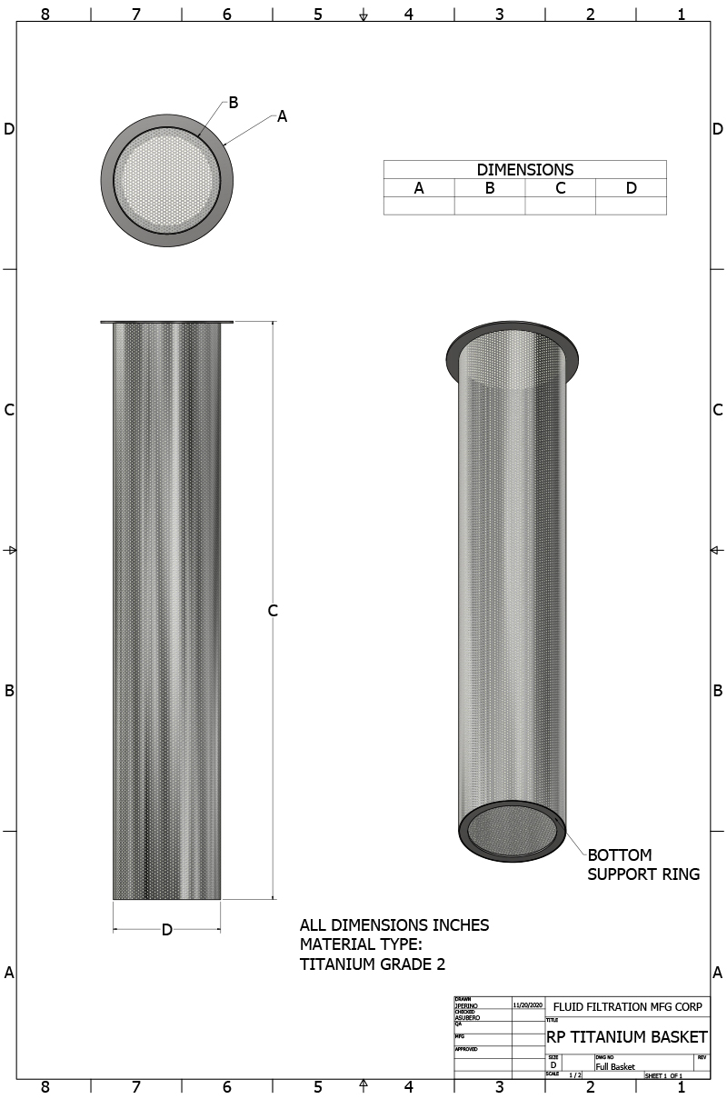 Inner horizontal and vertical bands available for mesh lined, titanium, Hastelloy, Monel, or Stainless Steel replacement baskets.