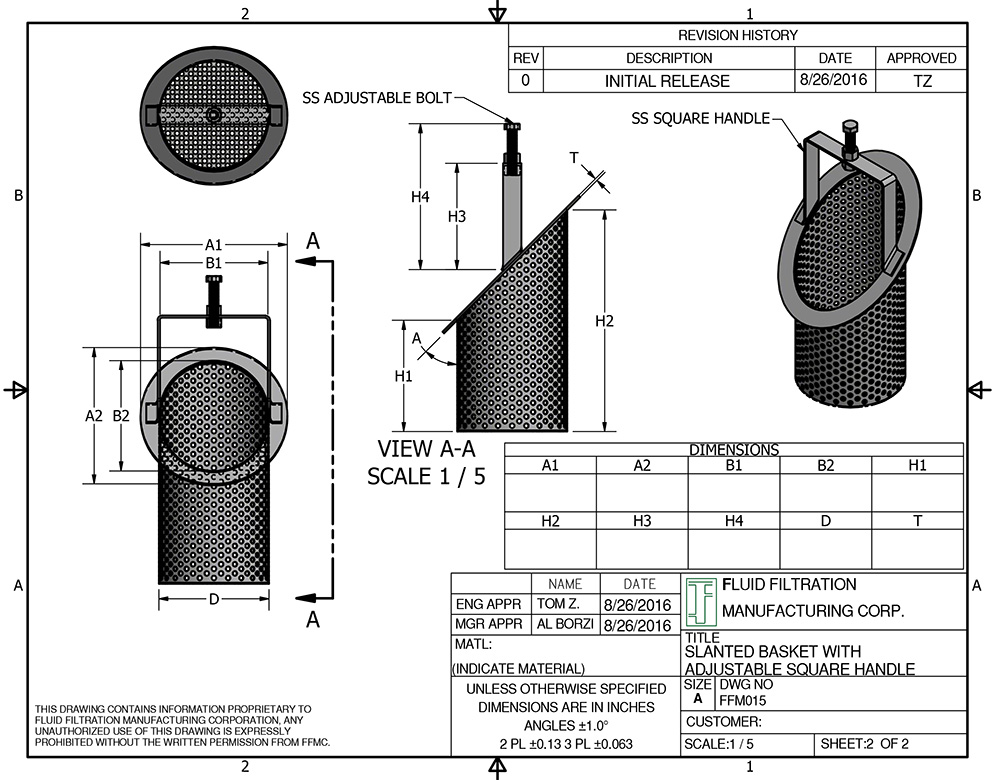 Stainless Steel 316 slanted baskets with adjustable handle bolt
