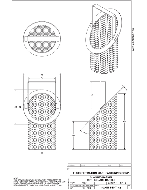 Size 6" heavy duty SS 316 slanted basket for a fabricated simplex strainer