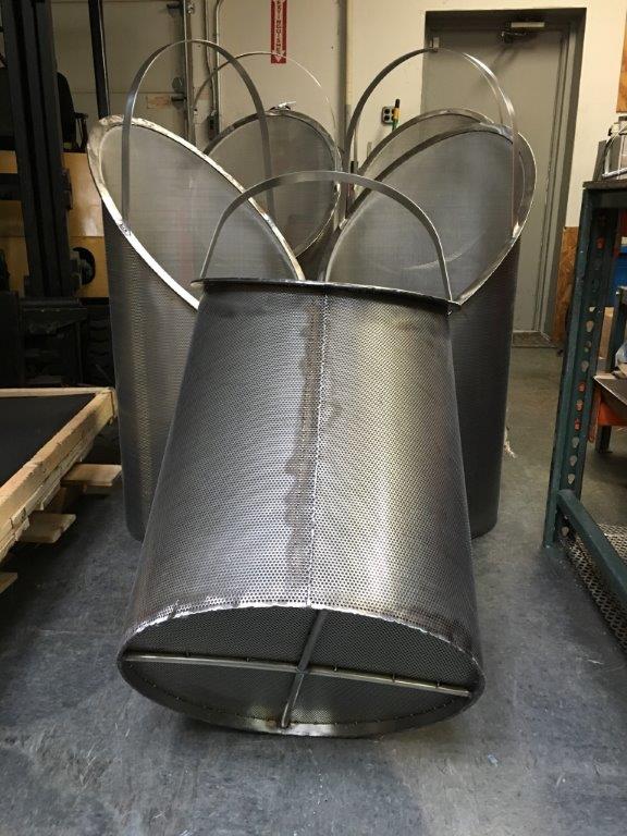 Lobster pot style convoluted fabricated Stainless Steel strainers for 10, 12, 16, and 18 inch Hayward model 72-73 simplex strainers and model 50-51 duplex strainers, lined with or without Stainless Steel mesh. Also available in Monel material.