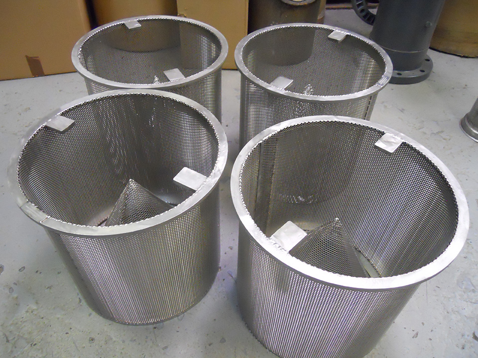 3.0" stainless steel 1/4" perforated discharge pump strainers.