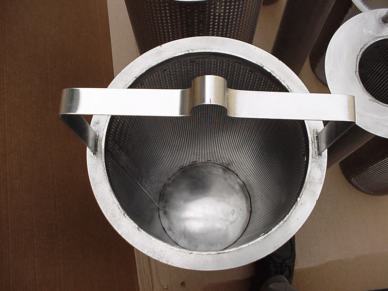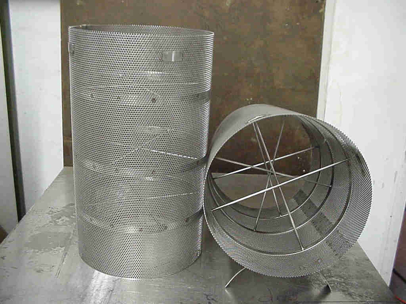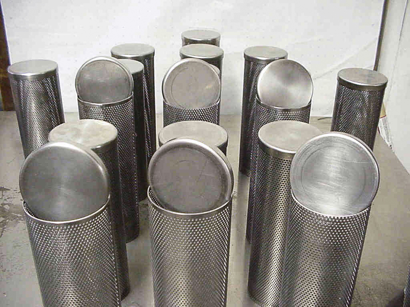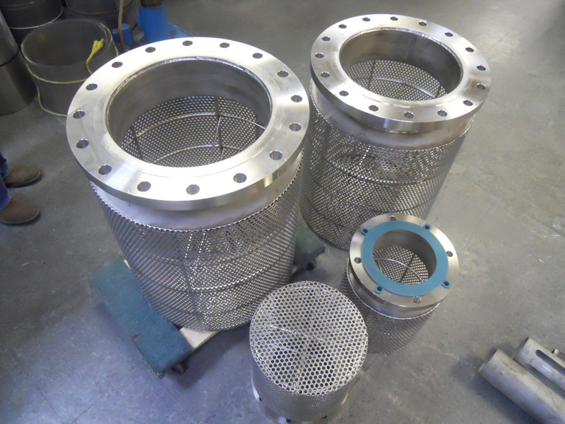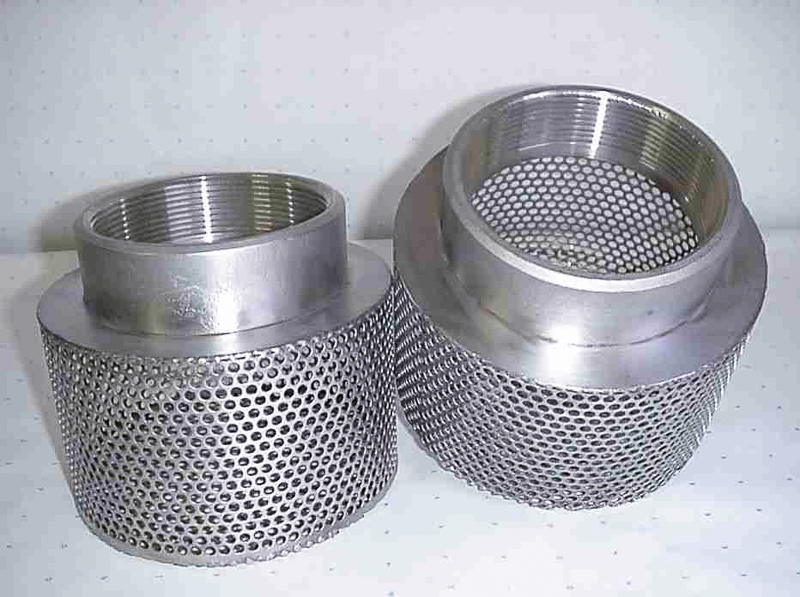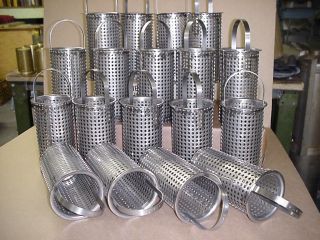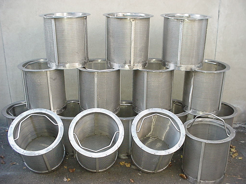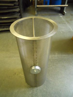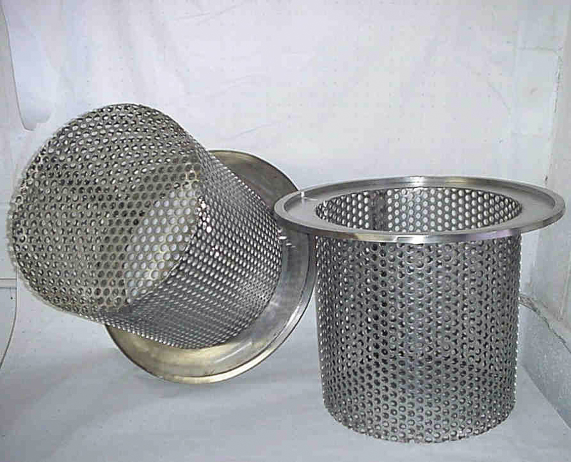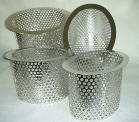 1/4 inch perforated stainless steel cylinders with support beams built inside for extra rigidity. Used in "Y" type strainers.