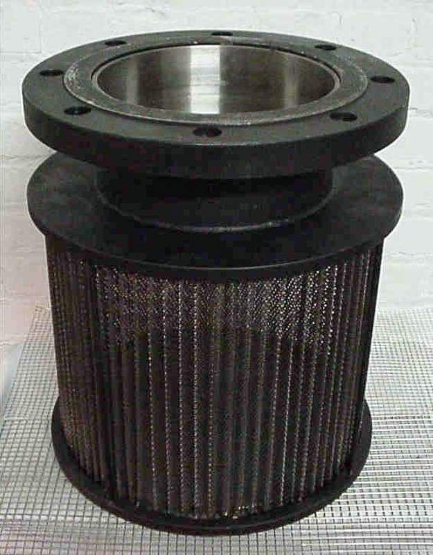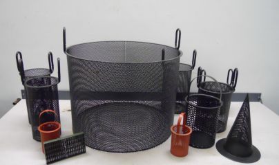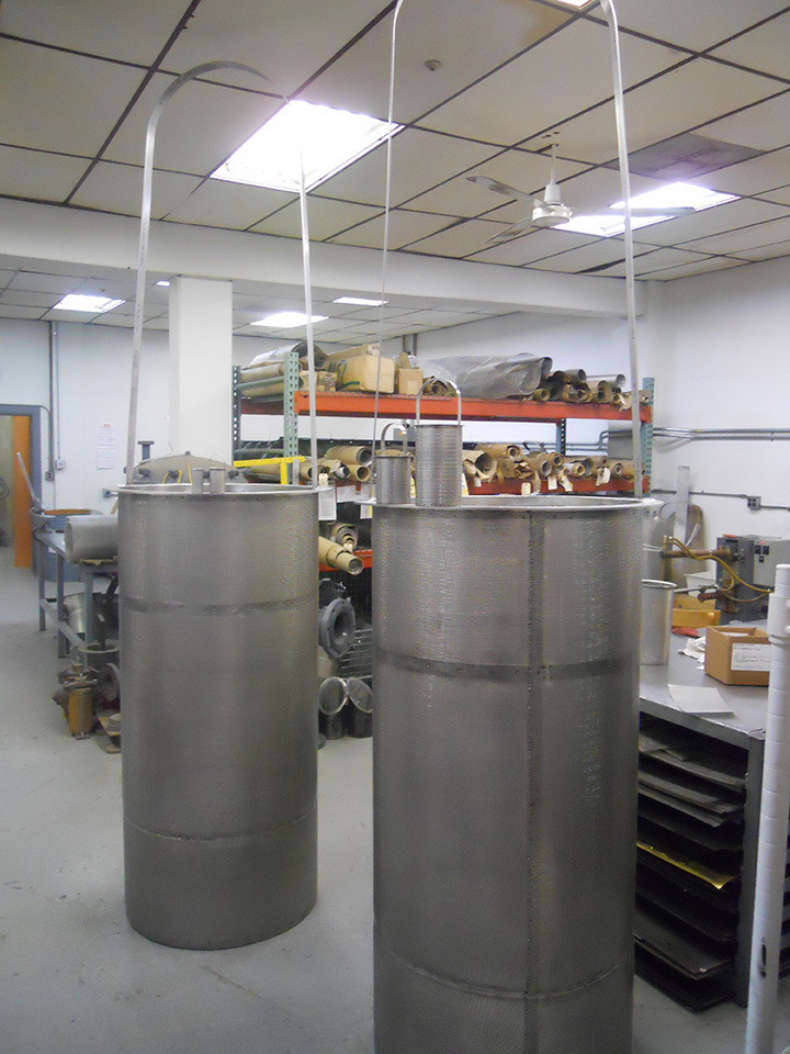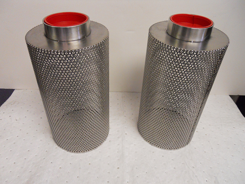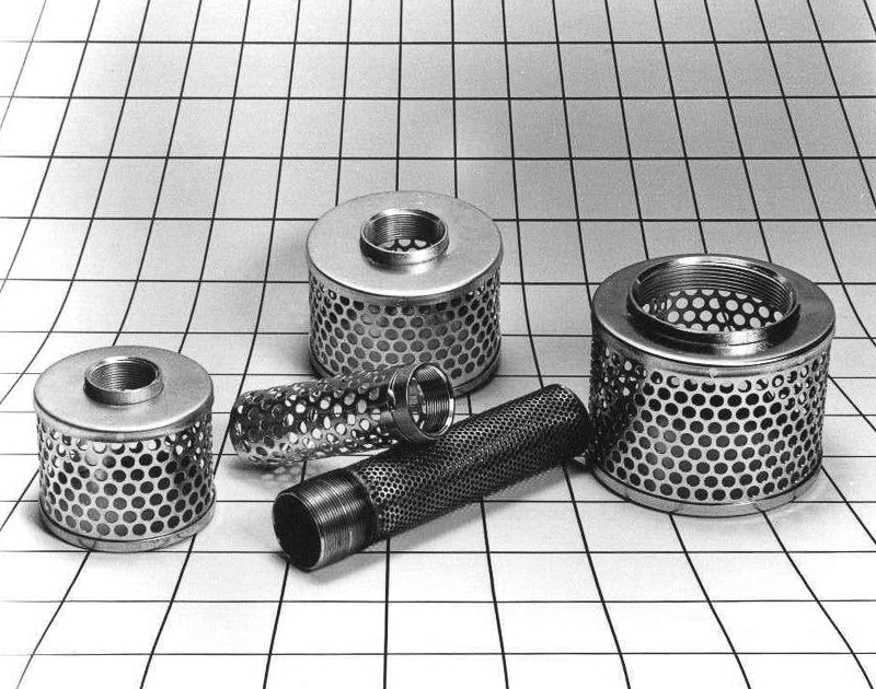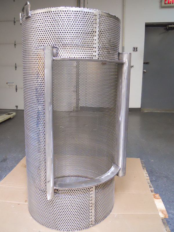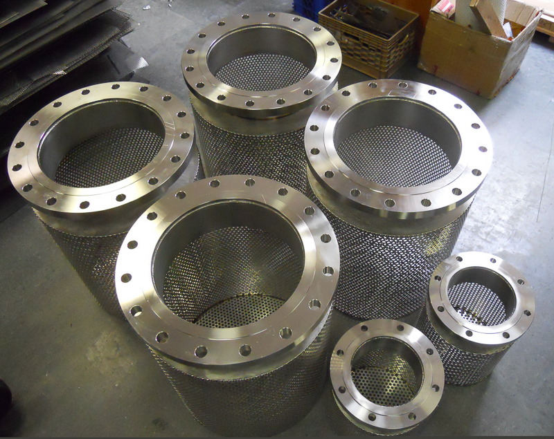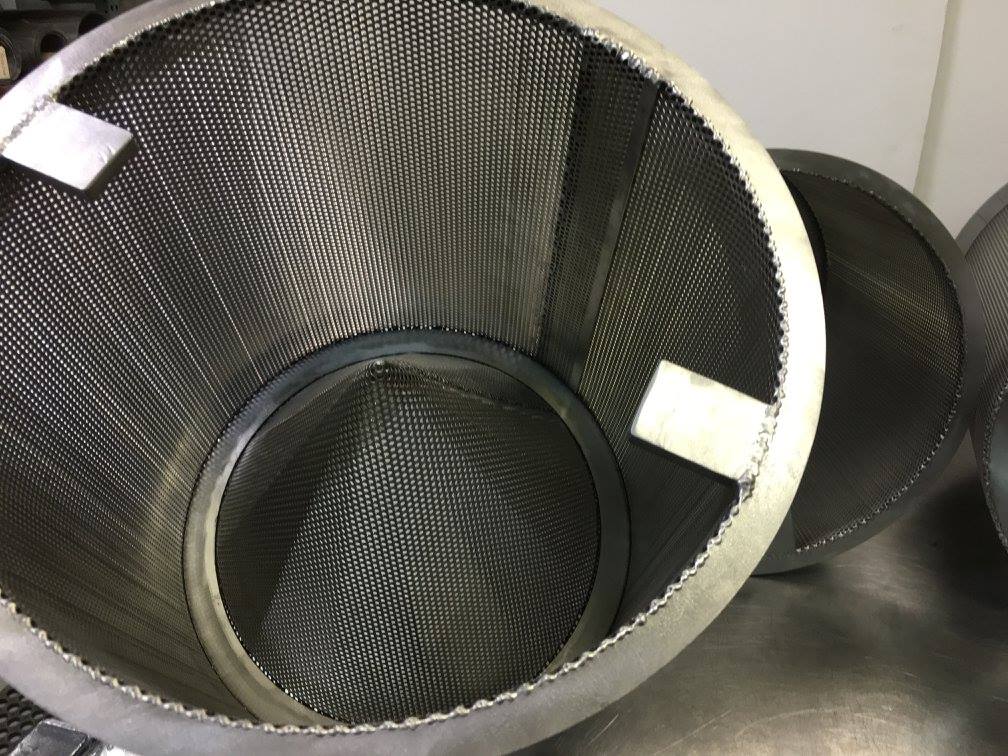 1/4 inch perforated stainless steel cylinders with support beams built inside for extra rigidity. Used in "Y" type strainers.