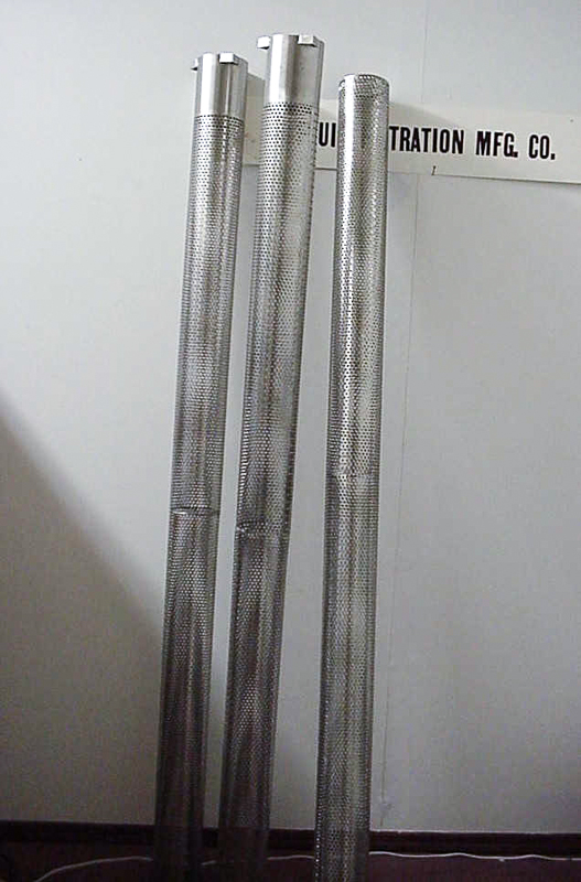 316 stainless steel 1/4" perforated strainers, 8.0 feet long x 6.0 inch diameter.