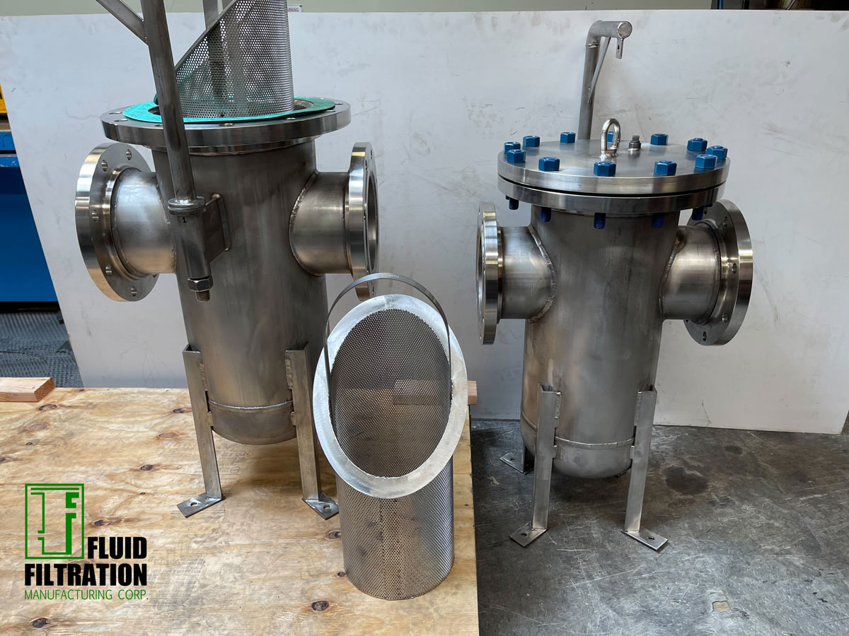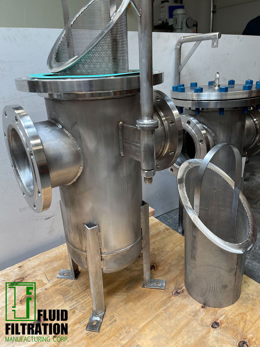 Stainless steel 316 grooved flange basket strainers with 1/2" perforated material.
