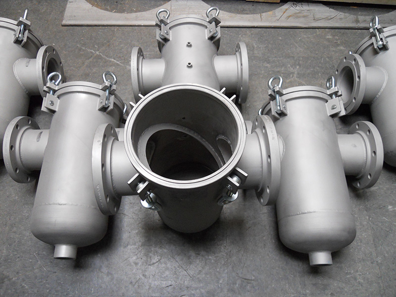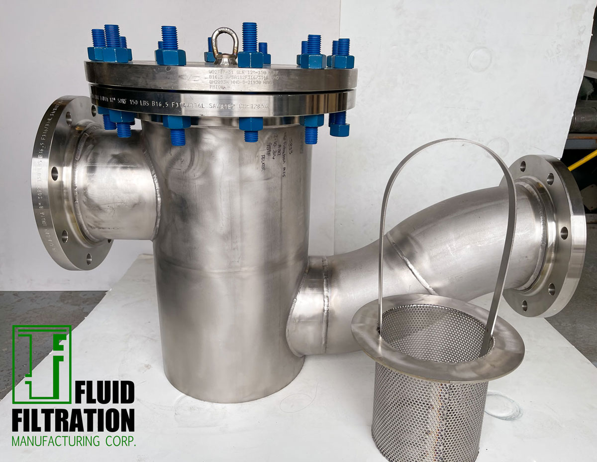 Stainless steel fabricated high pressure strainers with bolted cover.