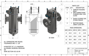 Fabricated Strainers Size 6.0 Stainless Steel 317 #150lb Flange with quick opening eye bolt closure