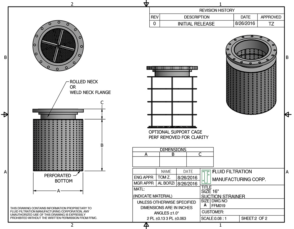 All Stanless steel heavy duty suction strainer with 16" flange.