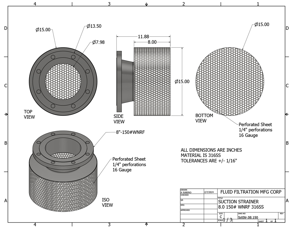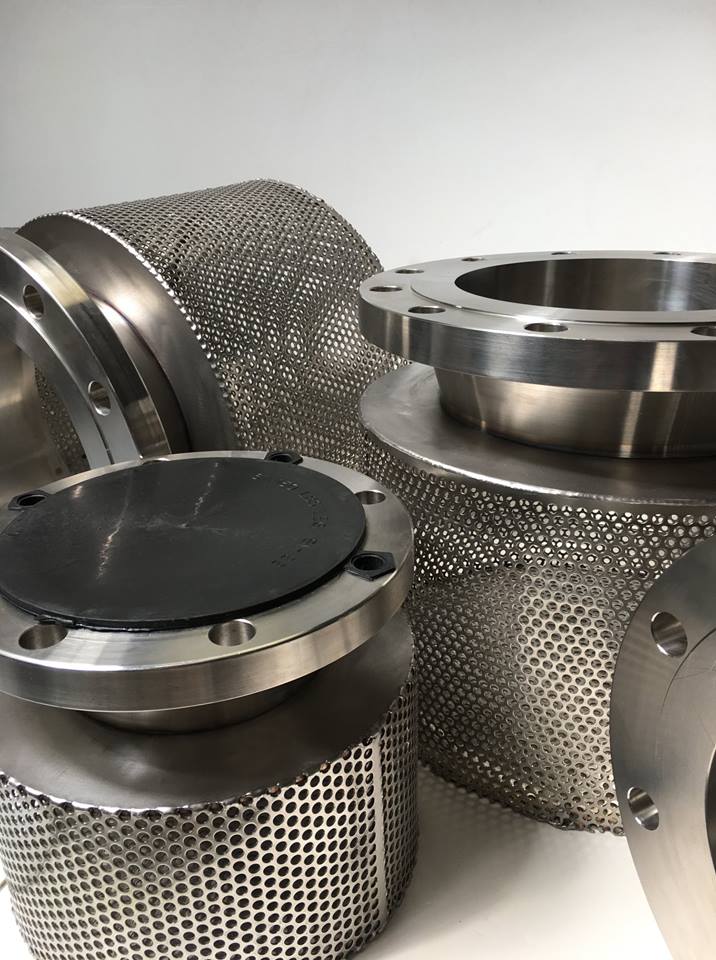 300 lbs flanged stainless steel 1/8" perforated strainers.