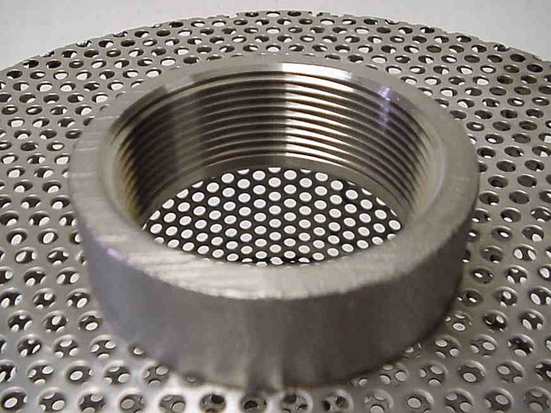 Material of construction: zinc plated steel, stainless steel, monel, hastelloy, etc. Perforated 1/32" to 1.0" diameter holes.