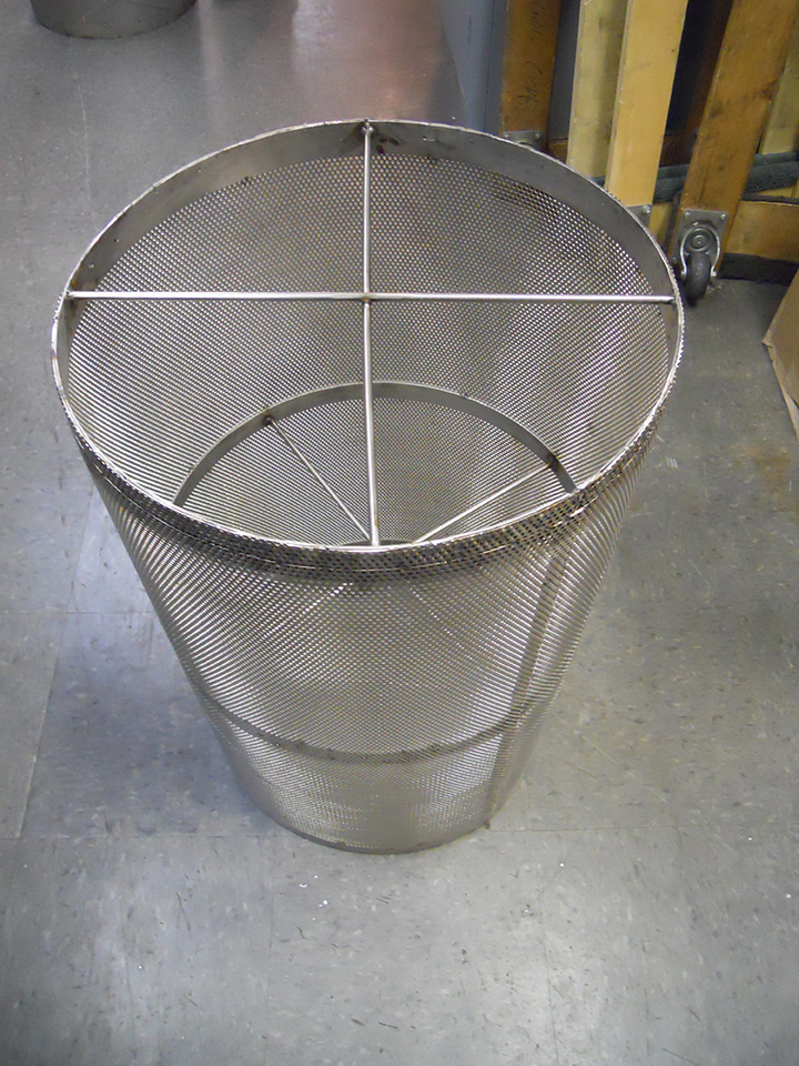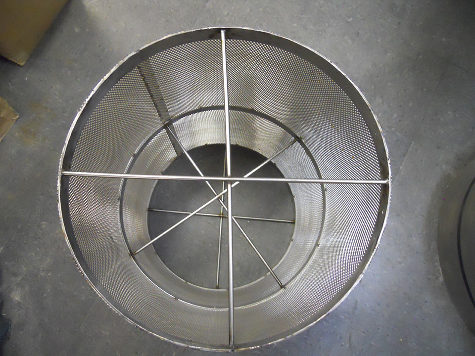 Stainless Steel 317 large sized slanted perf basket strainer with supported bottom