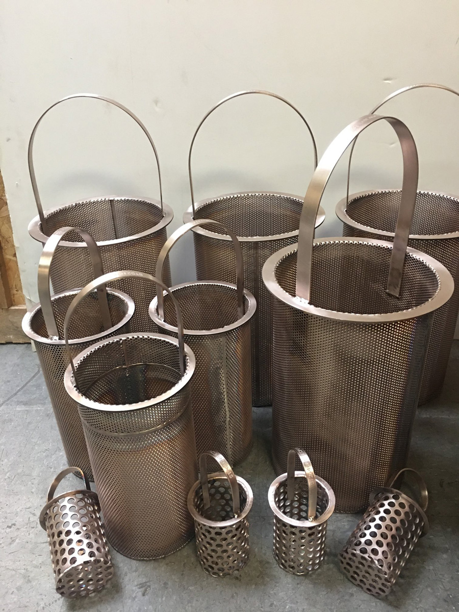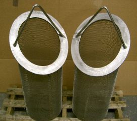 Lobster pot style convoluted fabricated Stainless Steel strainers for 10, 12, 16, and 18 inch Hayward model 72-73 simplex strainers and model 50-51 duplex strainers, lined with or without Stainless Steel mesh. Also available in Monel material.