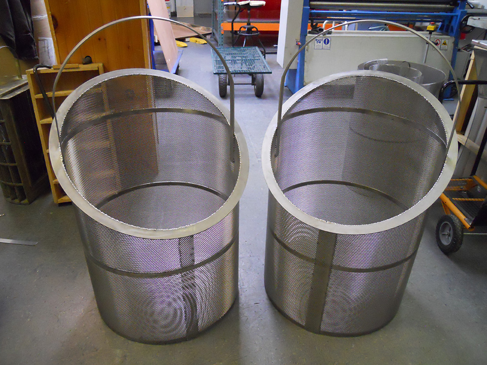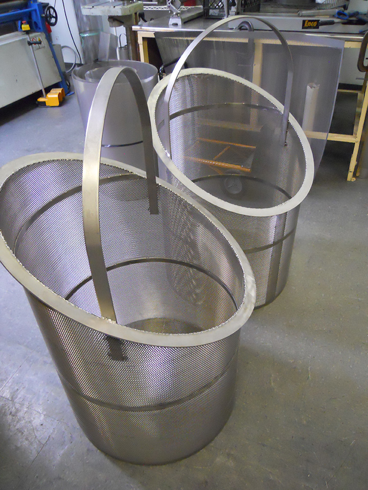 Fomaco, Russllefinex replacement baskets available in expanded metal or peforated Stainless Steel with machine grooved or stamped top and bottom rings