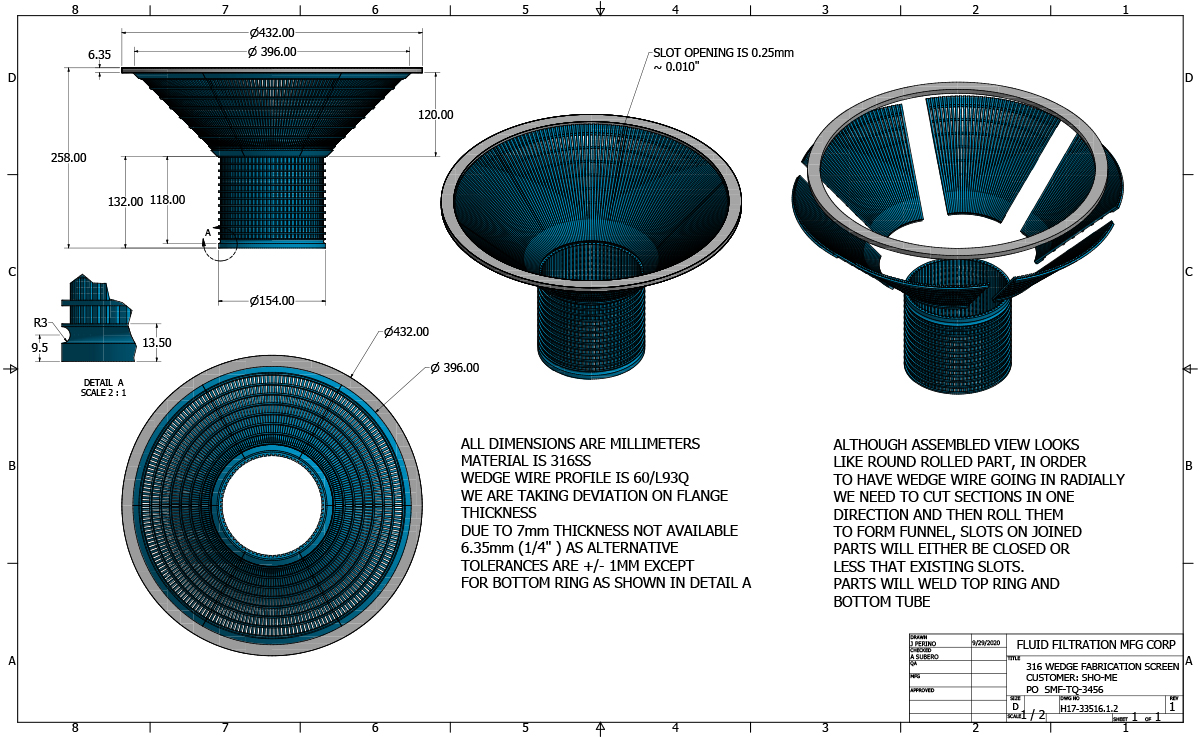 Wedge-Wire products are manufactured by an exclusive process of continuously welding an outer profile wire circumferentially in a helix pattern to a series of longitudinal support rods.