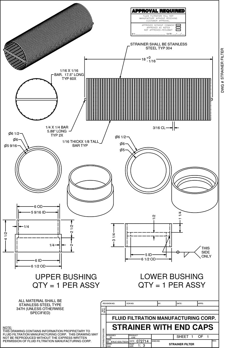 347 H Stainless Steel Wedge Wire Screens with solid tops and bottoms for Heat Exchanges